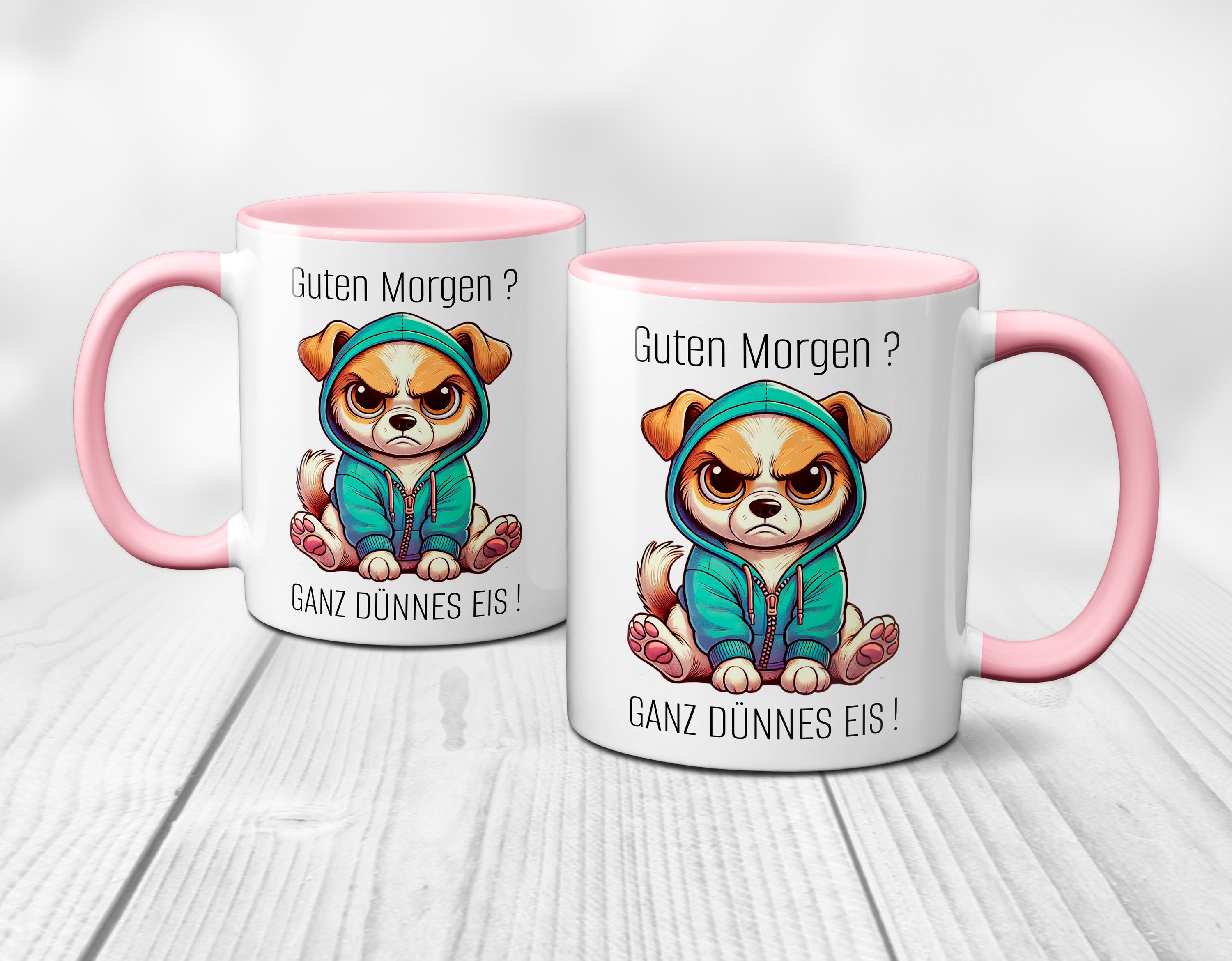 Süßer Hund mit Spruch - Guten Morgen? Ganz dünnes Eis! (rosa)