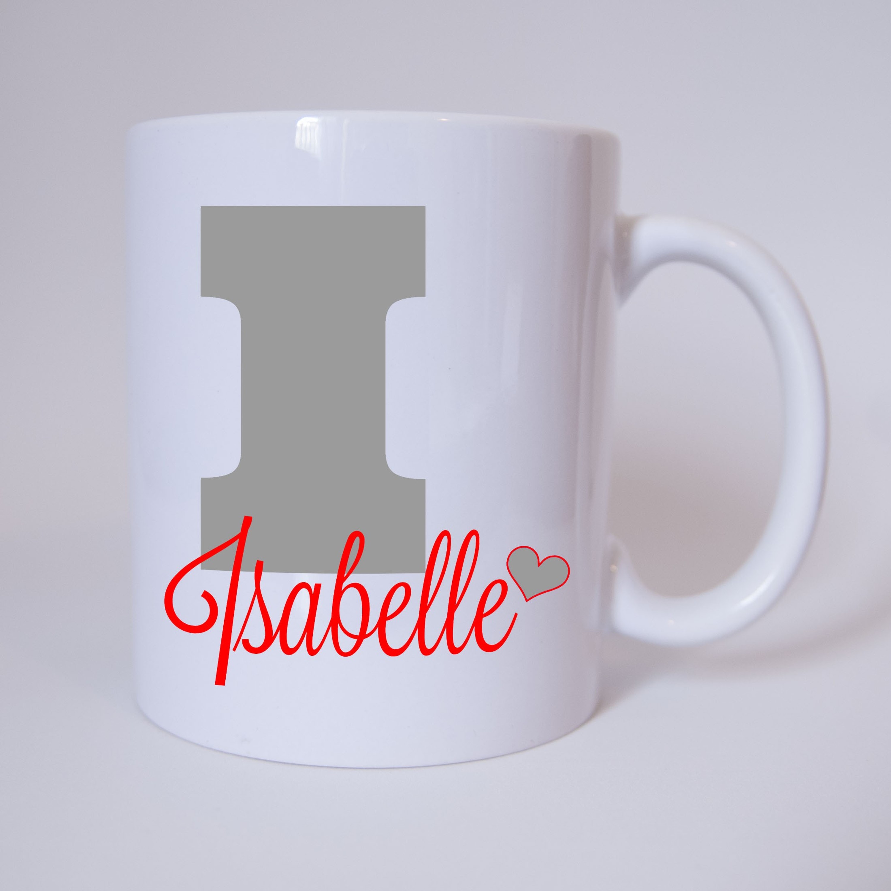 Namenstasse Buchstabe I, individueller Name (Grau/Rot) - bedruckte Tasse