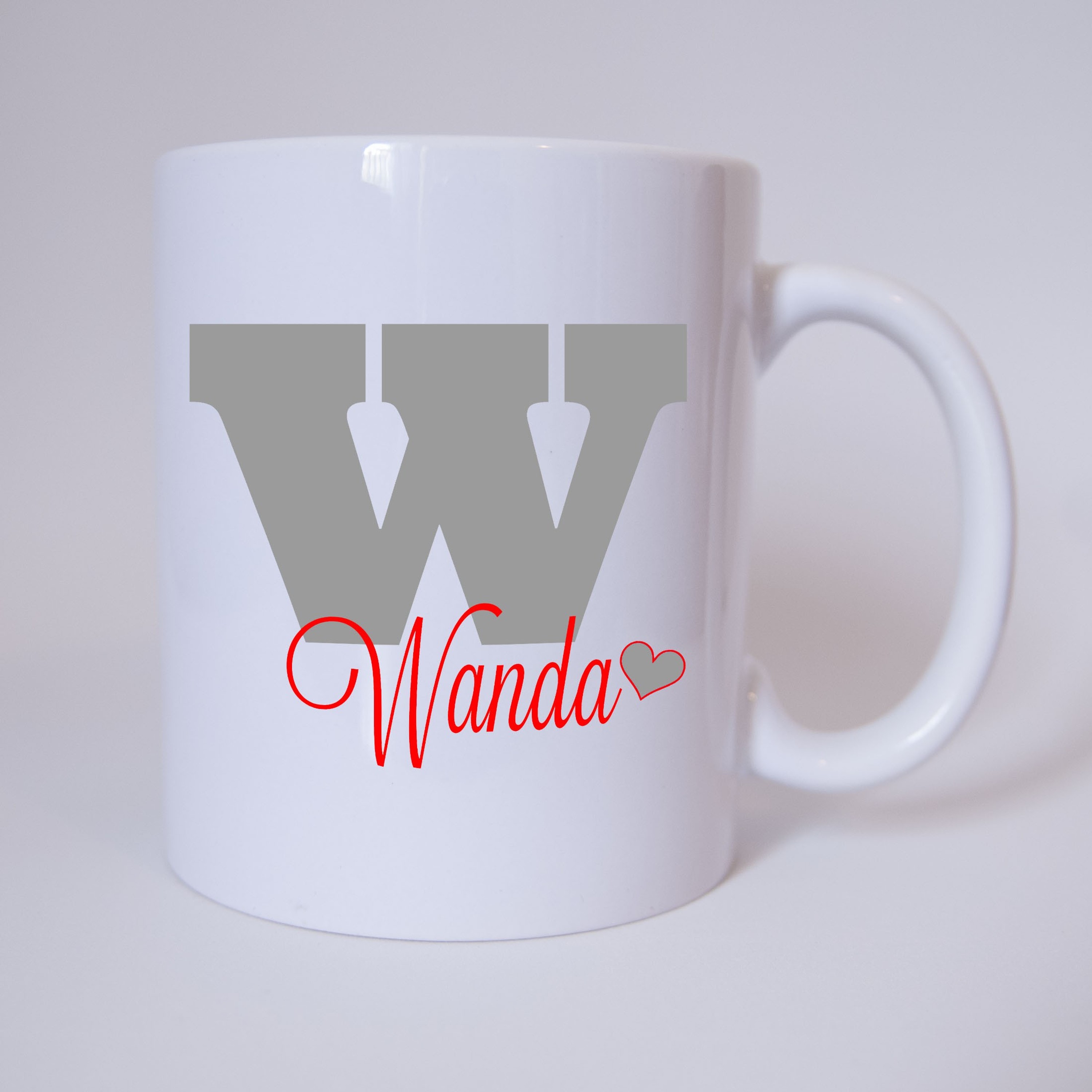 Individuelle Namenstasse Buchstabe W (Grau/Rot)