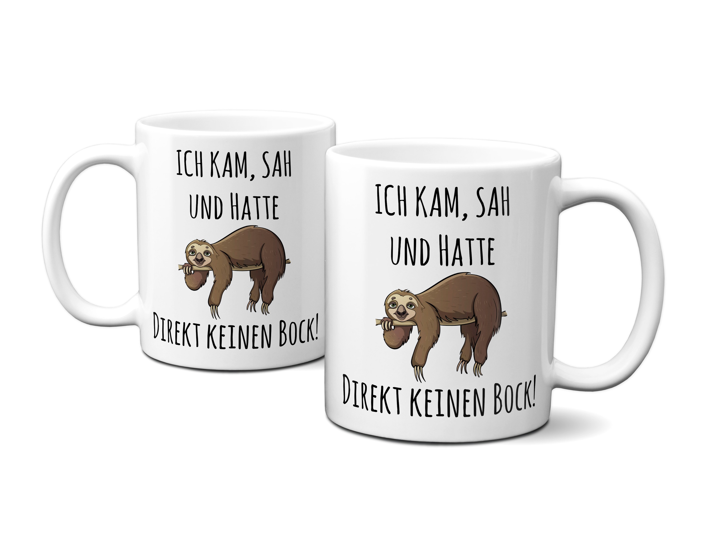 Tasse mit Spruch ICH KAM, SAH UND HATTE DIREKT KEINEN BOCK! - Geschenk für Arbeitskollegen, Kollegin, Chef, Chefin Sprüche Tassen lustig