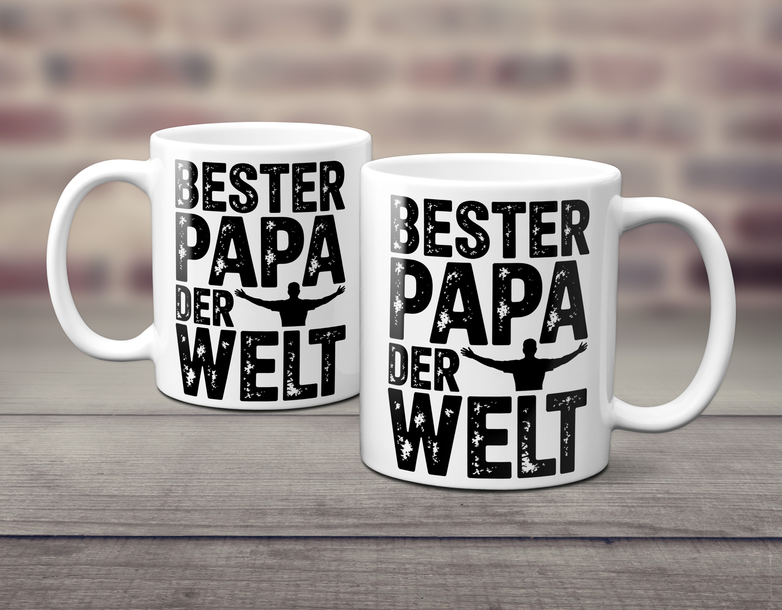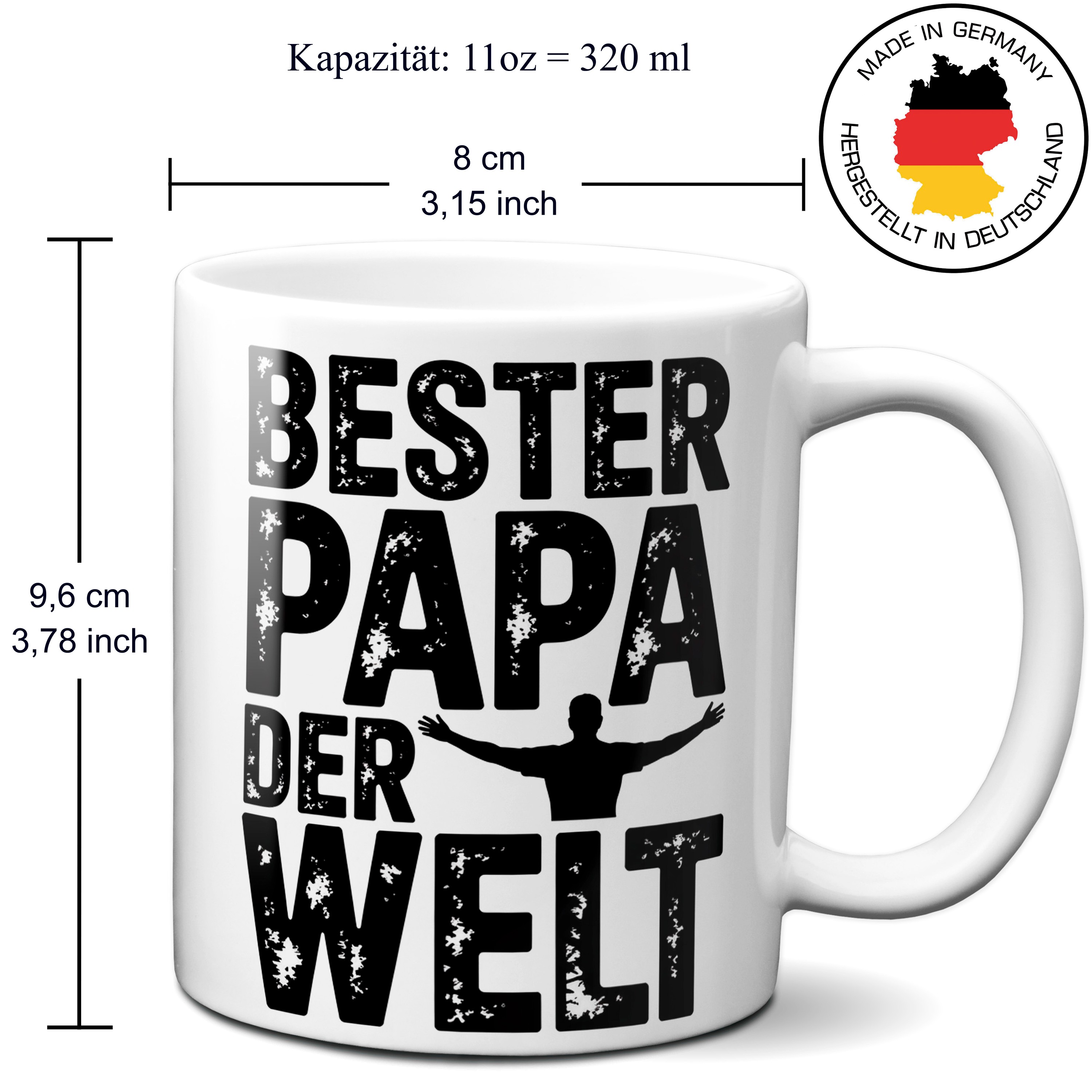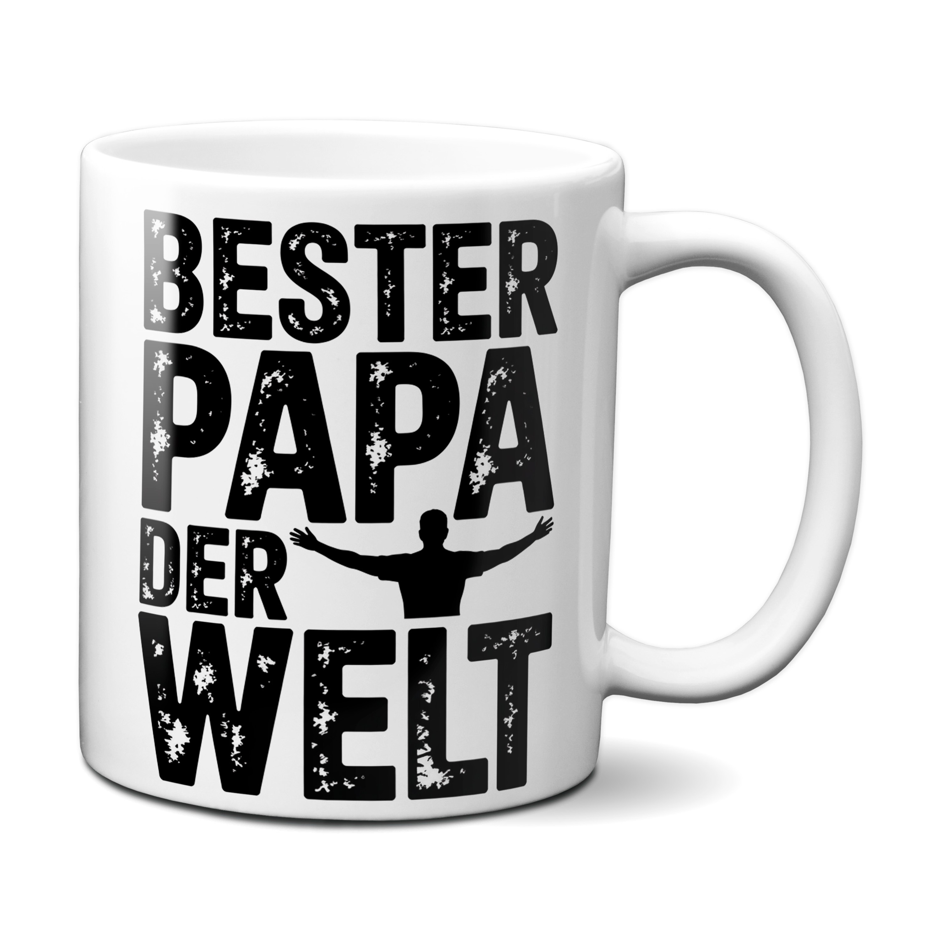Kaffeetasse mit Spruch „Bester Papa der Welt (ausgebreitete Arme)“ - Tasse - Kaffeetasse - Kaffeebecher - Tasse mit Spruch - bedruckte Tasse