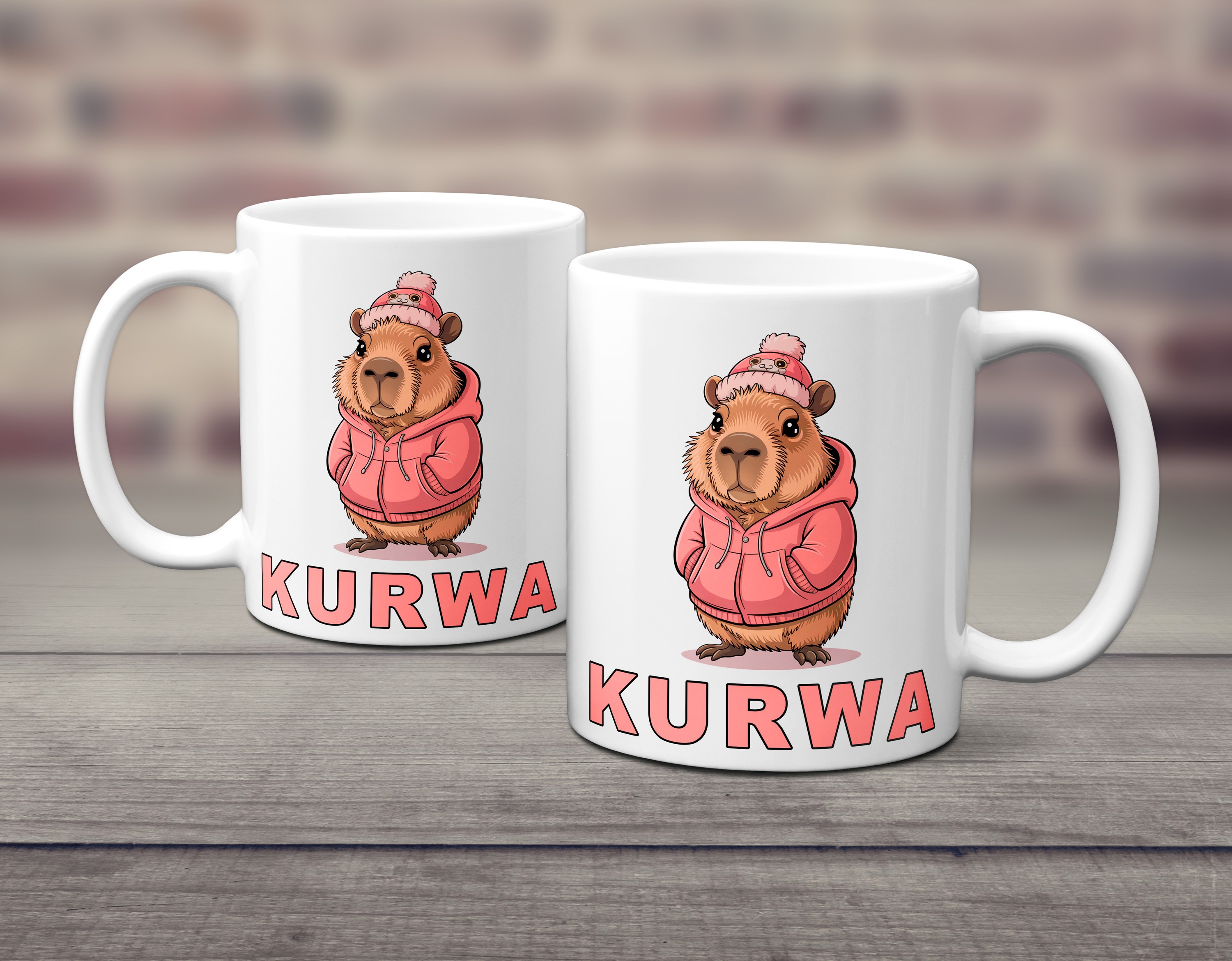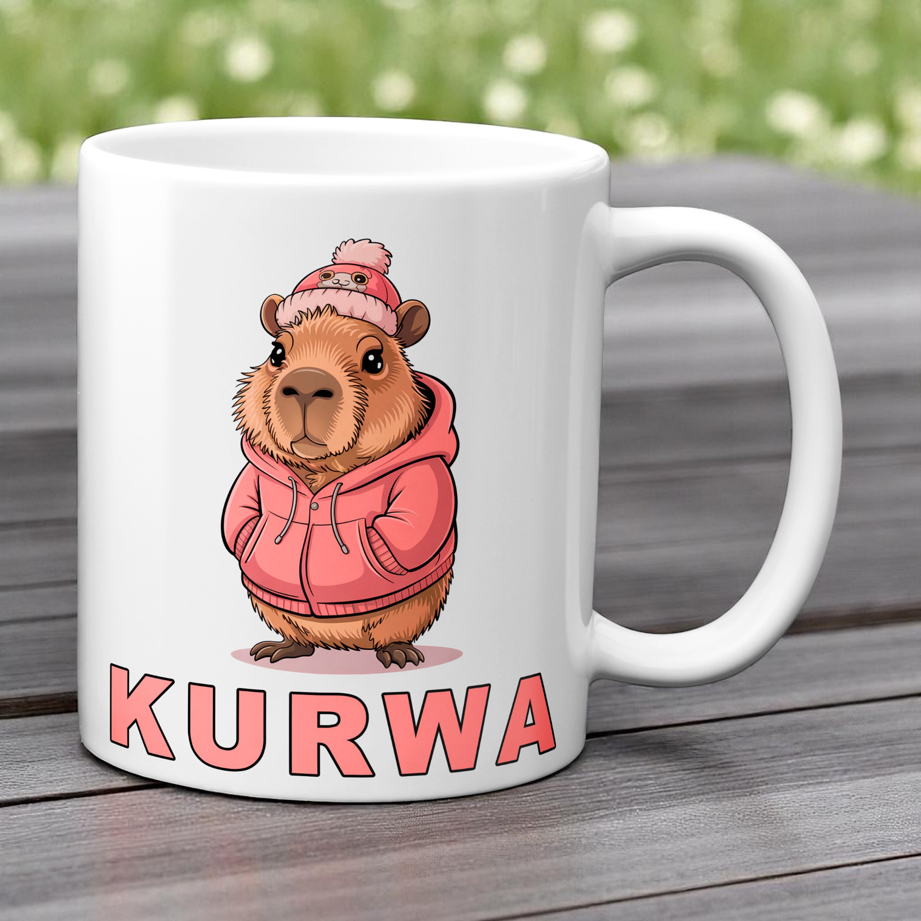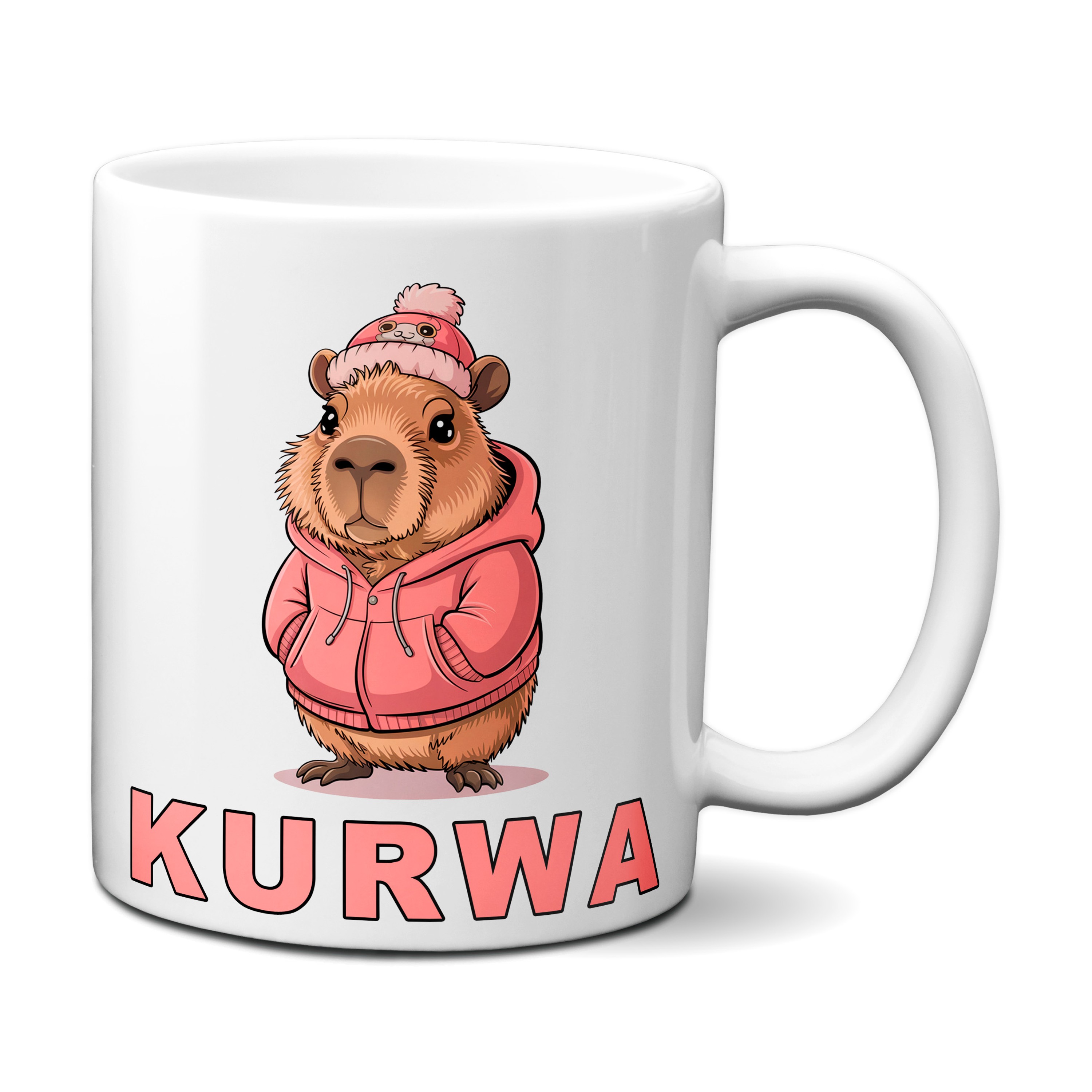 Lustige Capybara Tasse mit Spruch Kurwa (weiß)