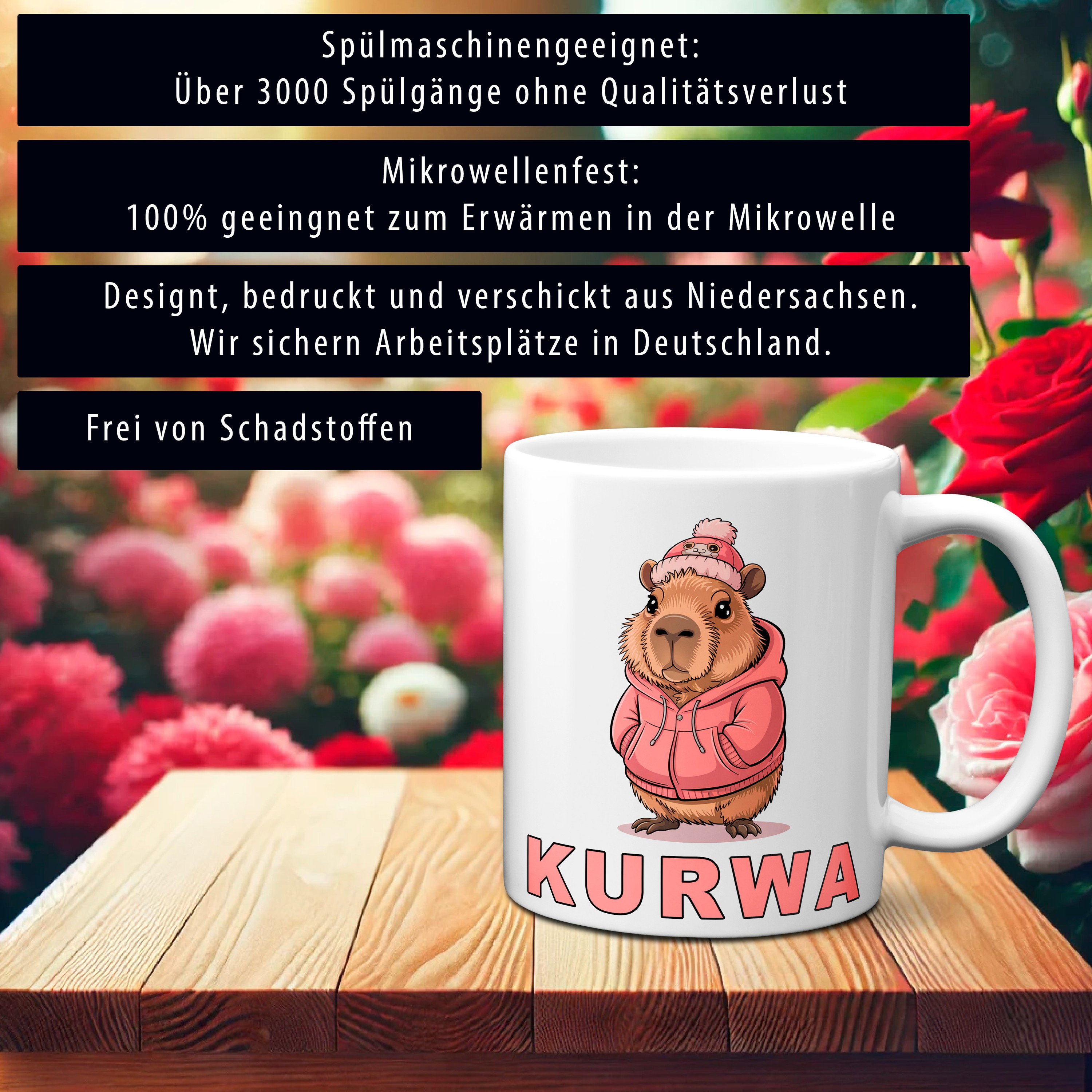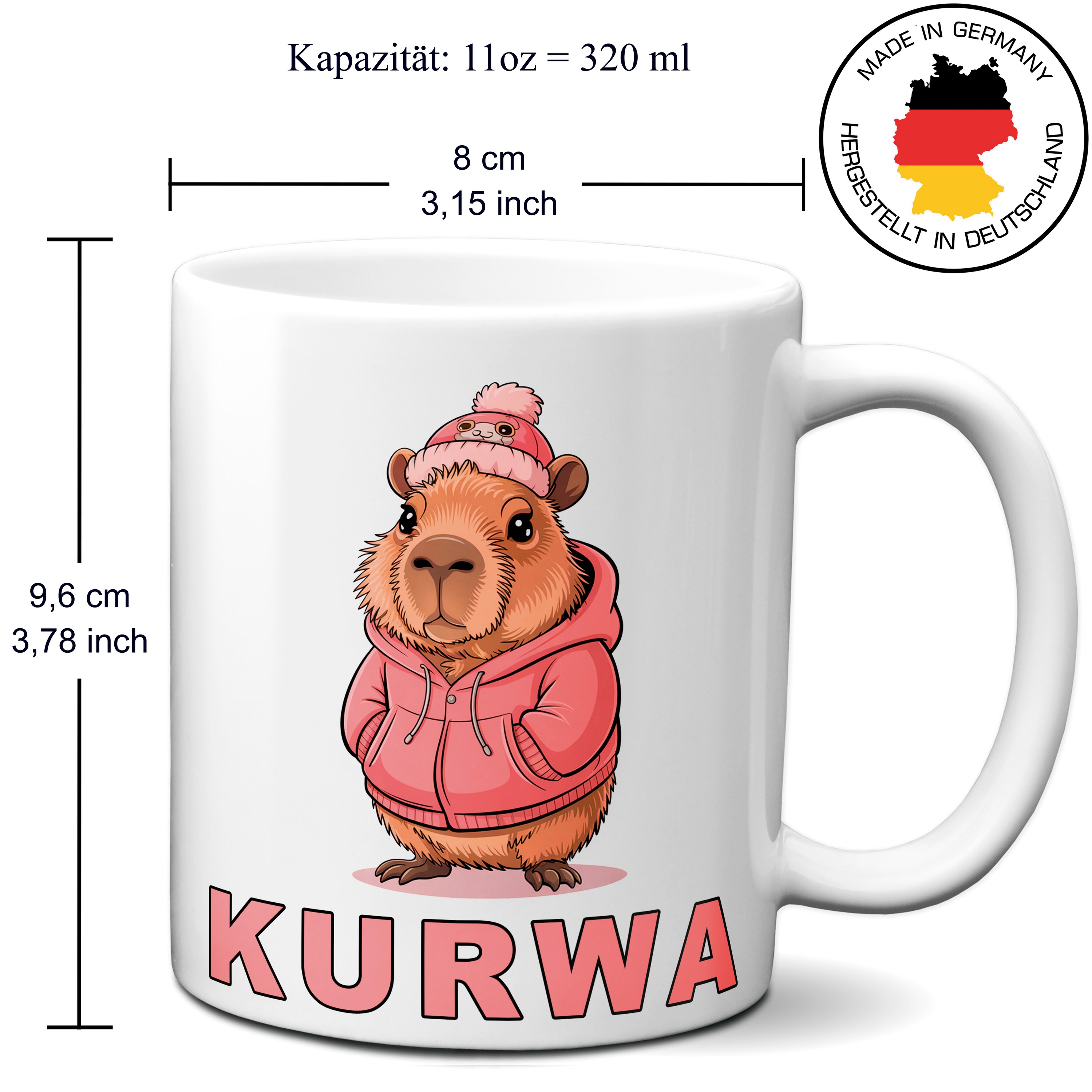 Kaffeetasse mit Spruch „Kurwa“ mit Capybara - Tasse - Kaffeetasse - Kaffeebecher - Tasse mit Spruch - bedruckte Tasse