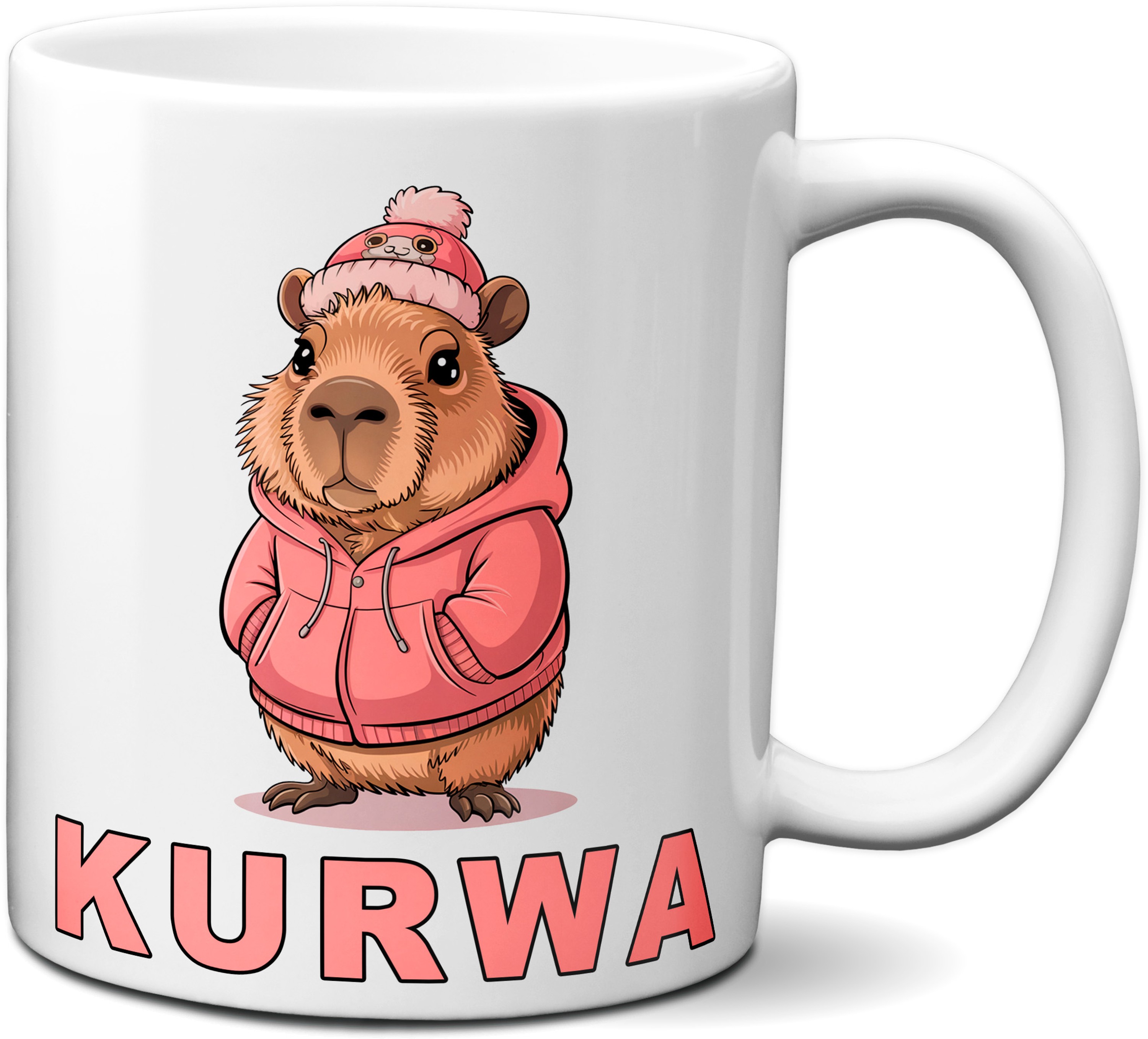 Lustige Capybara Tasse mit cooler Winterkleidung und dem Wort „Kurwa“ – ideal für Meme-Fans, Popkultur-Liebhaber und alle, die ihren Humor gern nonverbal ausdrücken. Der freche Stil sorgt garantiert für Lacher im Büro, zu Hause oder im Freundeskreis.